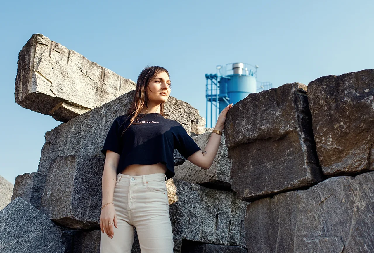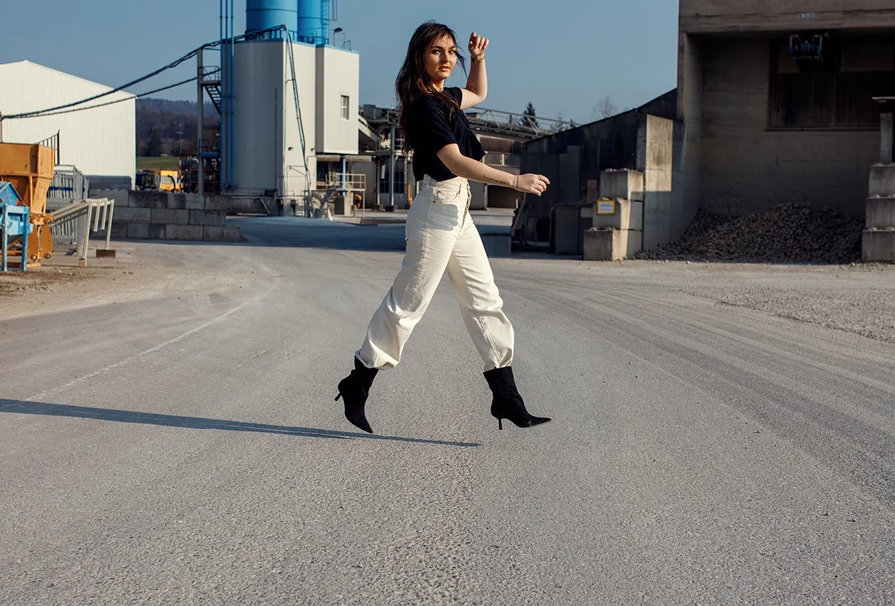 Die Umsetzung erfolgte als Outdoor Shooting am Hochrhein. Die gewählte Location mit industriellen Strukturen und offenen Flächen bot dabei die ideale Grundlage für eine ruhige und zugleich ausdrucksstarke Bildwirkung. Durch gezielte Posing-Anleitung während des Shootings entwickelte sich eine natürliche Körpersprache, die zwischen Bewegung und Ruhe variiert und so eine vielseitige, moderne Serie entstehen lässt.