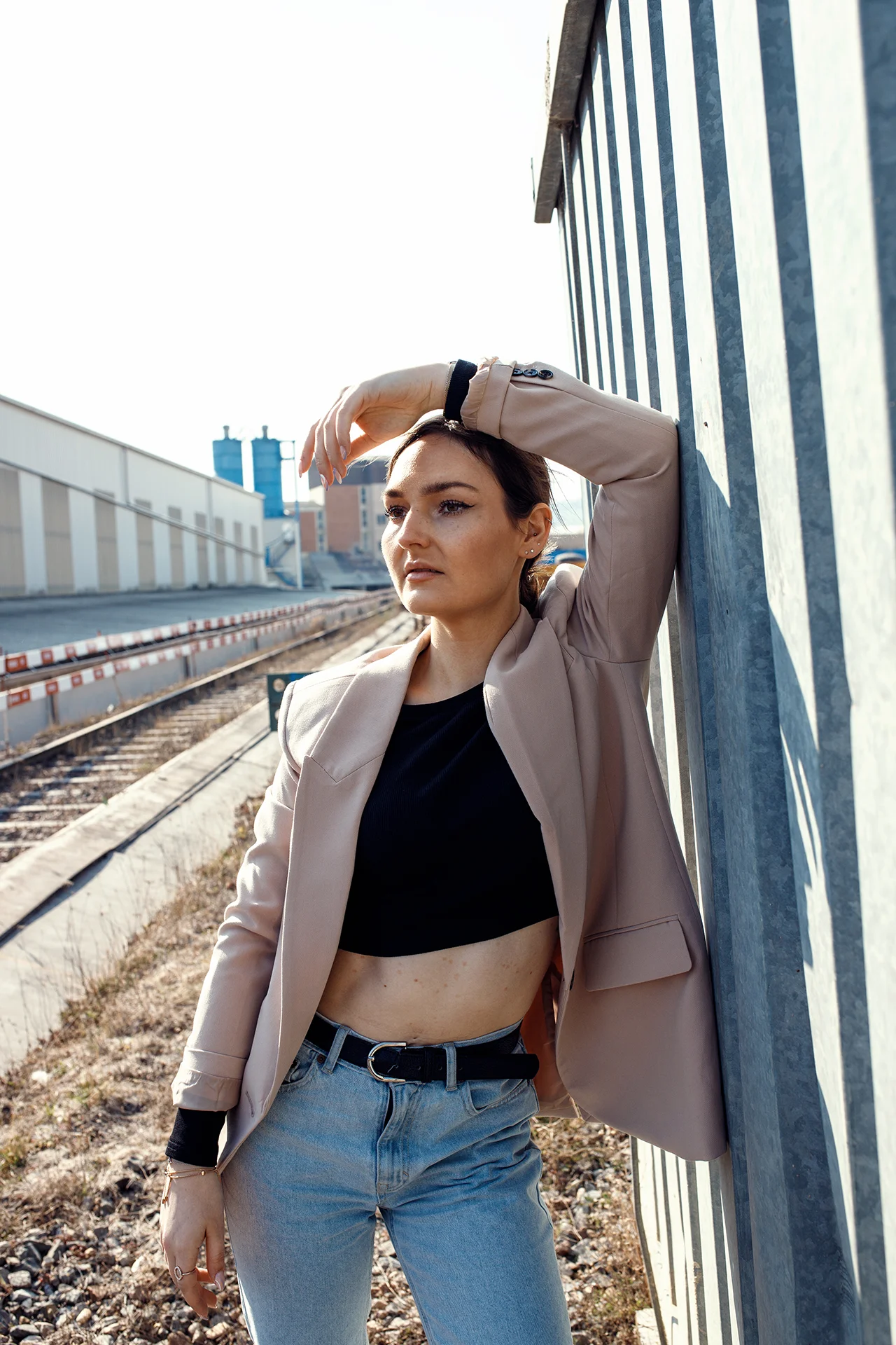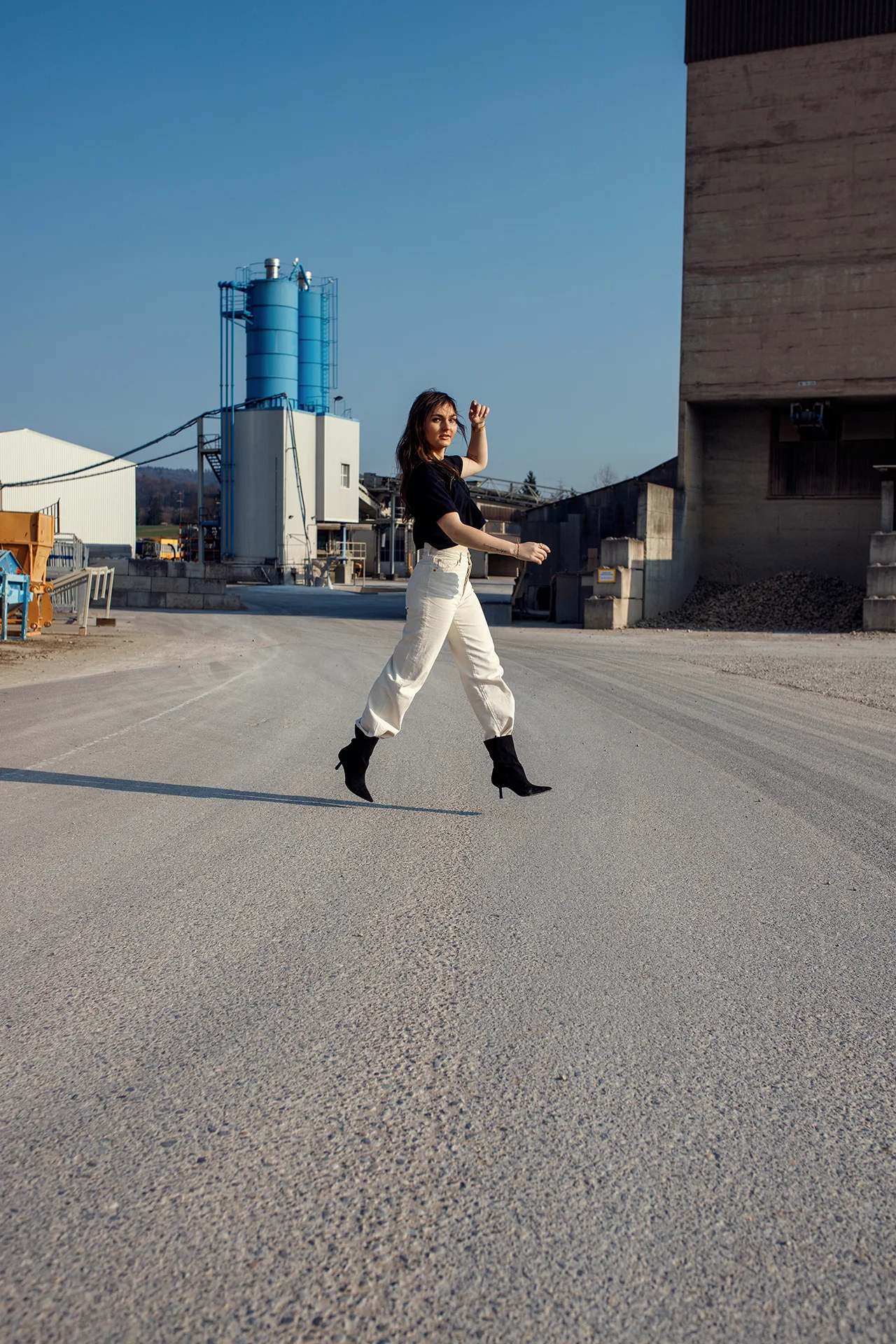 Die Umsetzung erfolgte als Outdoor Shooting am Hochrhein. Die gewählte Location mit industriellen Strukturen und offenen Flächen bot dabei die ideale Grundlage für eine ruhige und zugleich ausdrucksstarke Bildwirkung. Durch gezielte Posing-Anleitung während des Shootings entwickelte sich eine natürliche Körpersprache, die zwischen Bewegung und Ruhe variiert und so eine vielseitige, moderne Serie entstehen lässt.