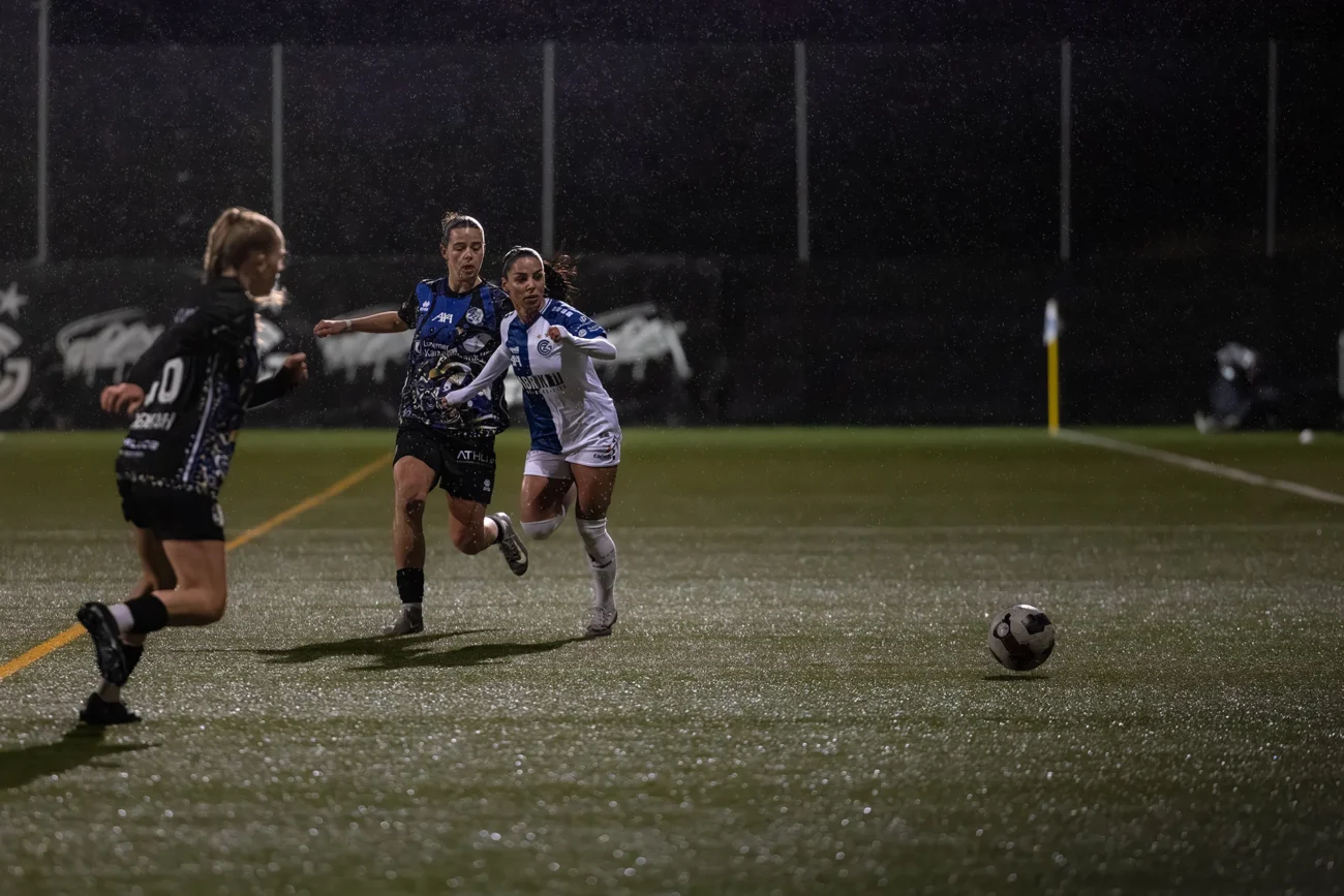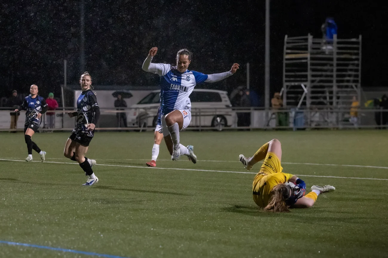 Von Beginn an entwickelt sich auf dem GC Campus ein intensives und umkämpftes Duell. Beide Mannschaften suchen früh den Weg nach vorne, verzichten auf langes Abtasten und prüfen die gegnerische Defensive mit Tempo. Entsprechend sind auch beide Torhüterinnen von Anfang an gefordert und setzen erste Akzente.