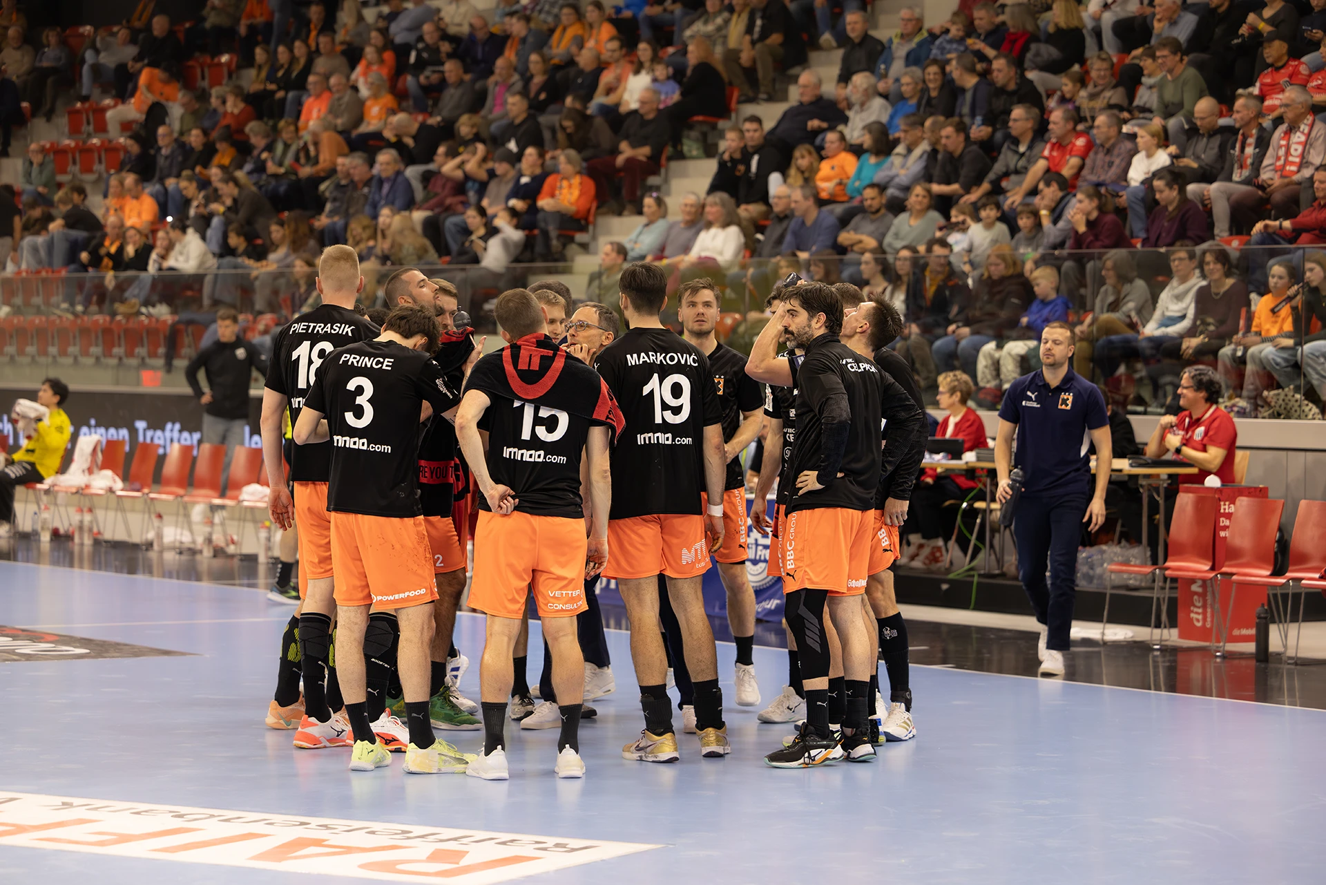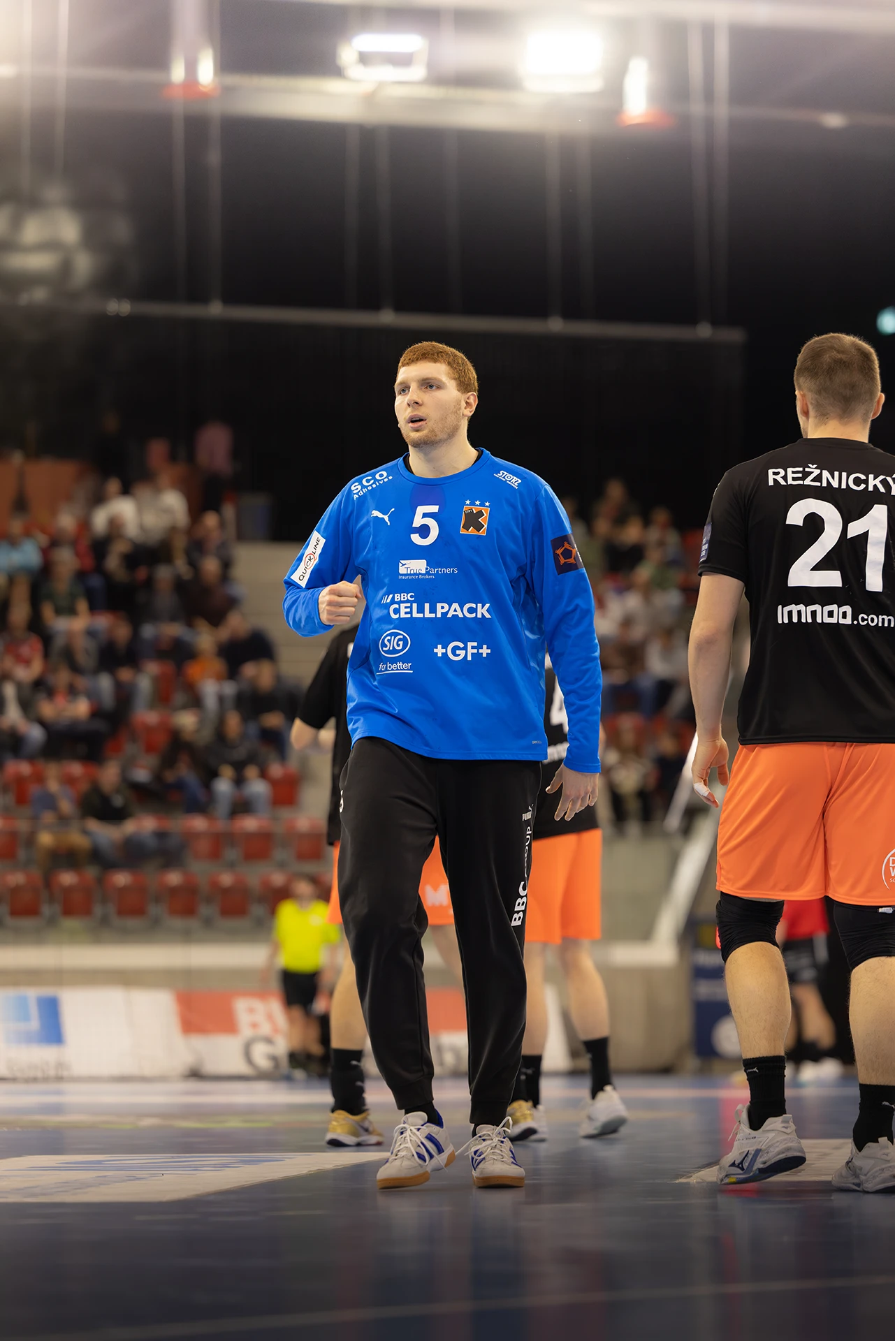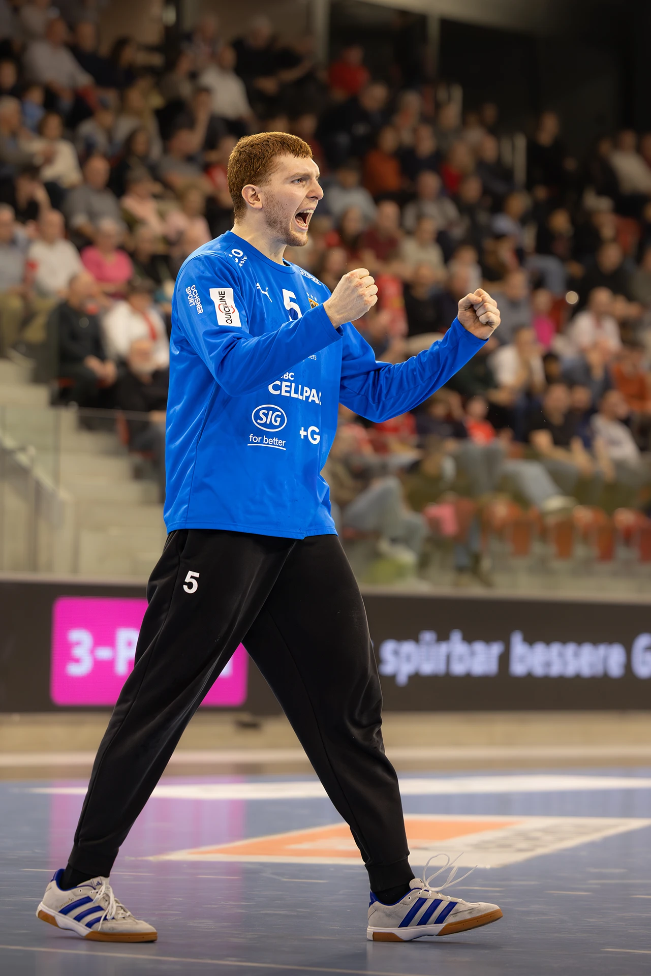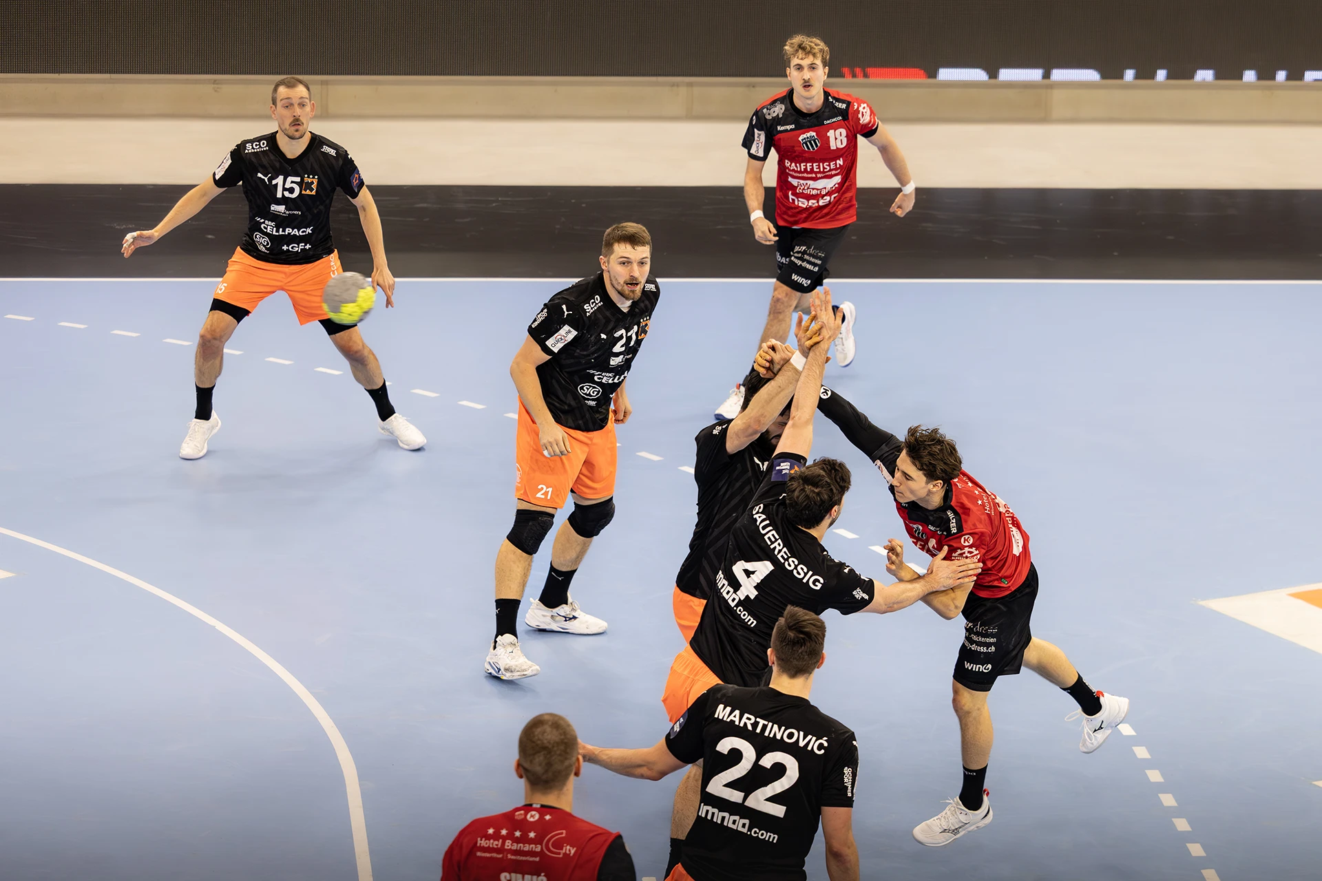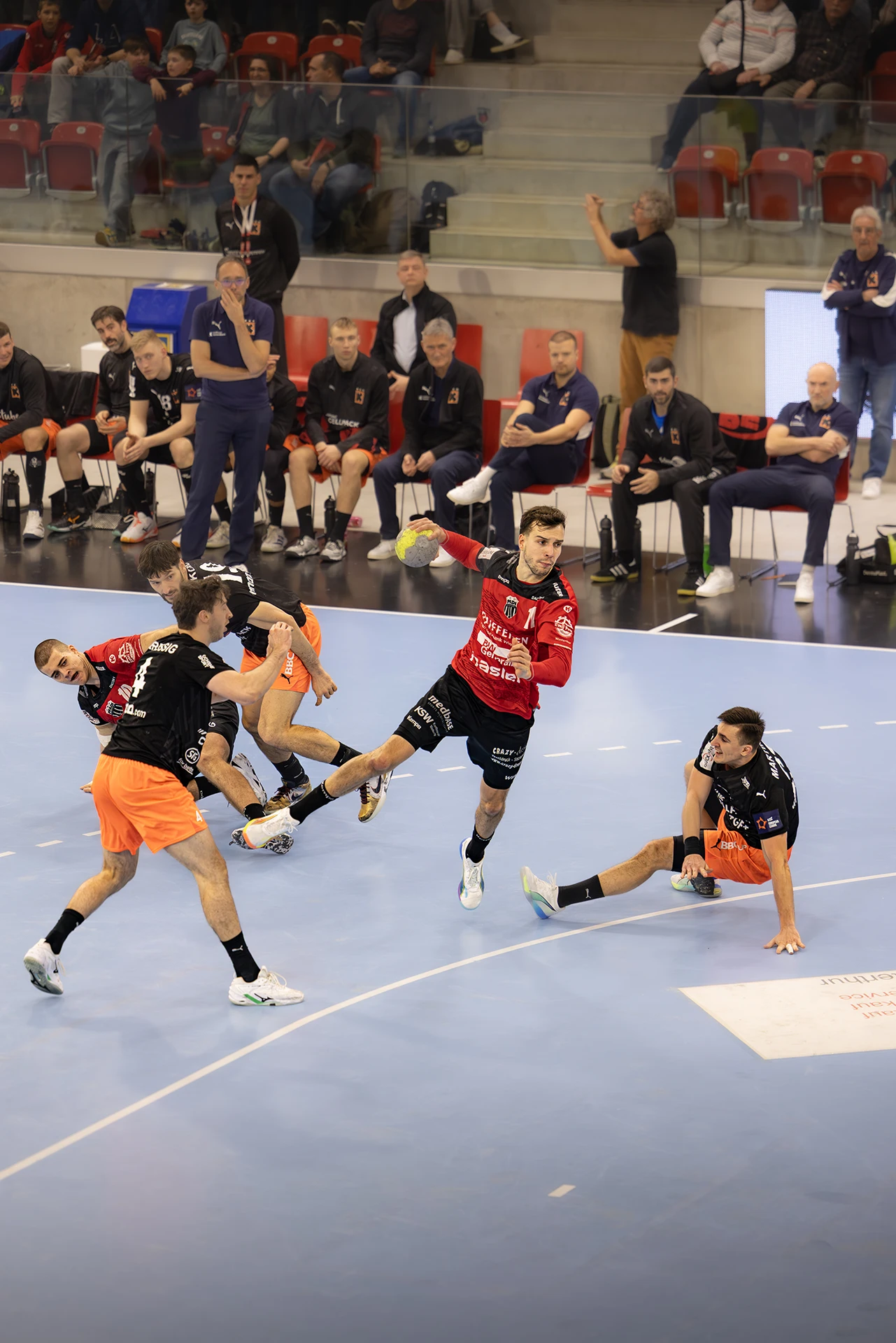 Beide Teams beginnen fokussiert, kompromisslos in der Defensive, geduldig im Aufbau. Tore sind hart erarbeitet, einfache Lösungen gibt es nicht. Pfadi setzt erste Nadelstiche, geht zwischenzeitlich mit 8:5 in Führung, doch die Kadetten reagieren abgeklärt. Ein Timeout, kleine Anpassungen – und das Spiel kippt wieder. Zur Pause liegt Schaffhausen knapp mit 13:12 vorne.
