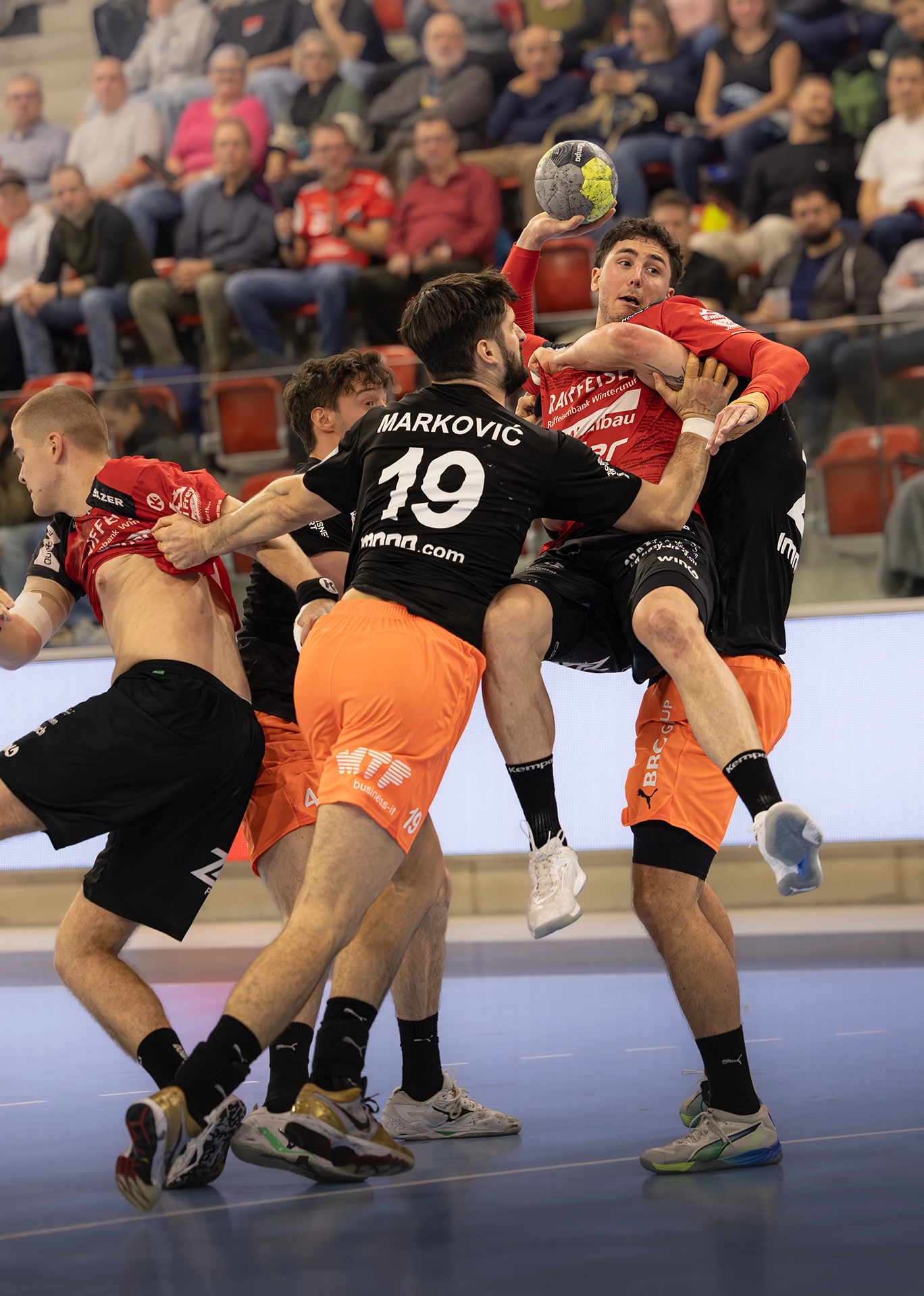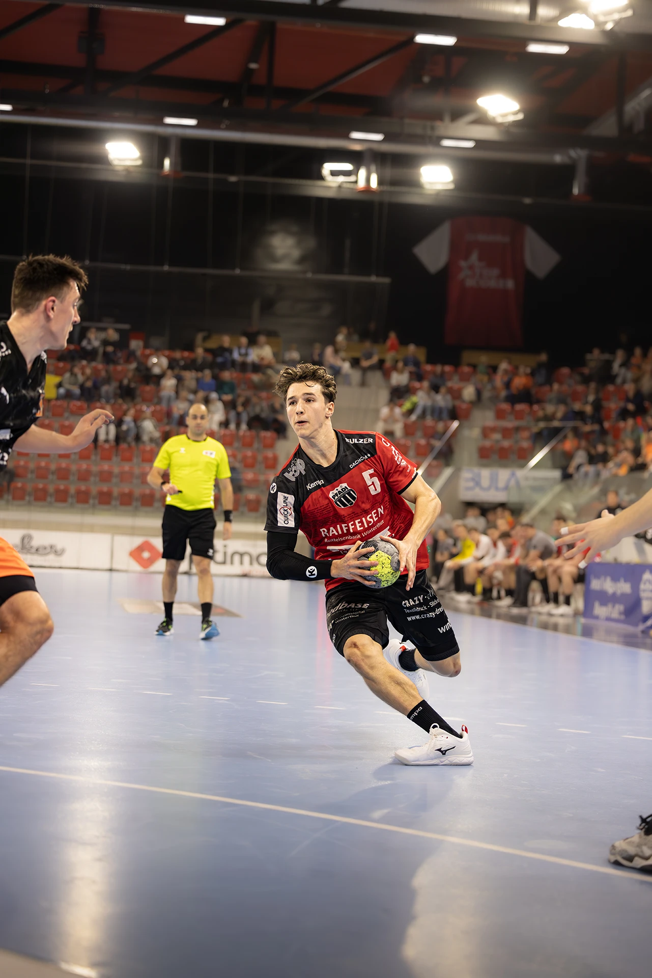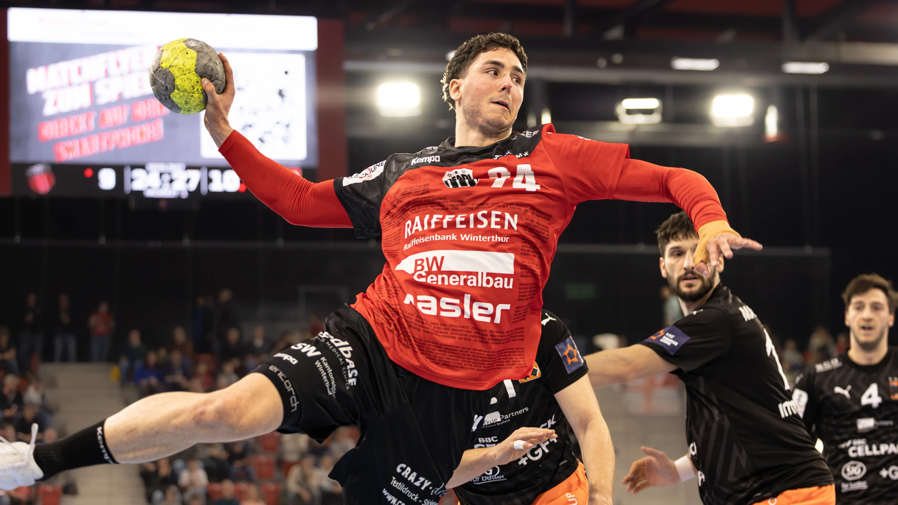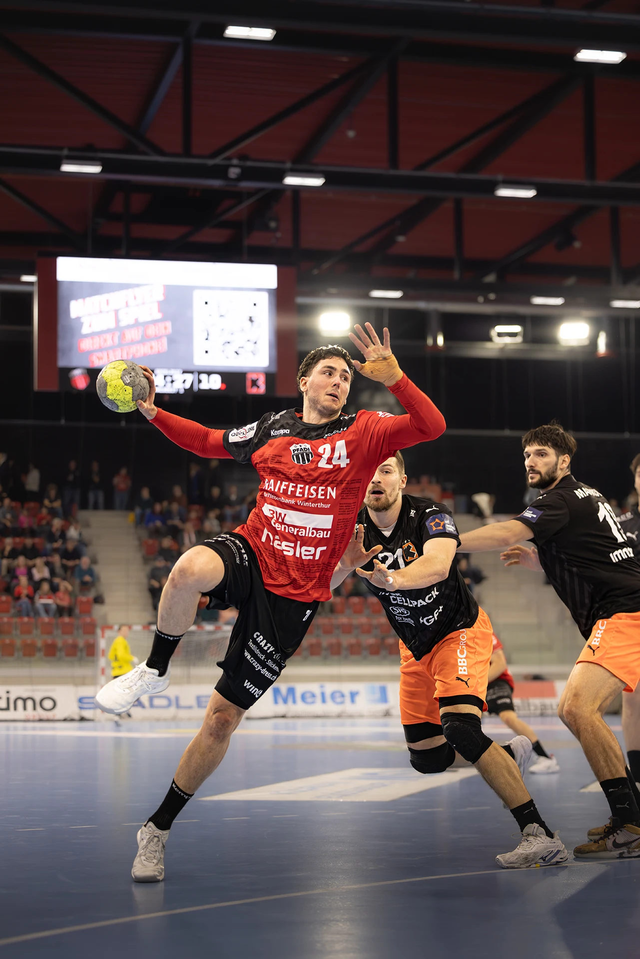 Was für ein Rahmen, was für eine Spannung. 1914 Zuschauer sorgen in der AXA ARENA Winterthur für eine stimmungsvolle Kulisse, das letzte Heimspiel des Jahres wird zum Schauplatz eines echten Gipfeltreffens. Pfadi Winterthur, zuhause bislang stark, fordert den ungeschlagenen Tabellenführer Kadetten Schaffhausen – und begegnet ihm über 60 Minuten auf Augenhöhe.