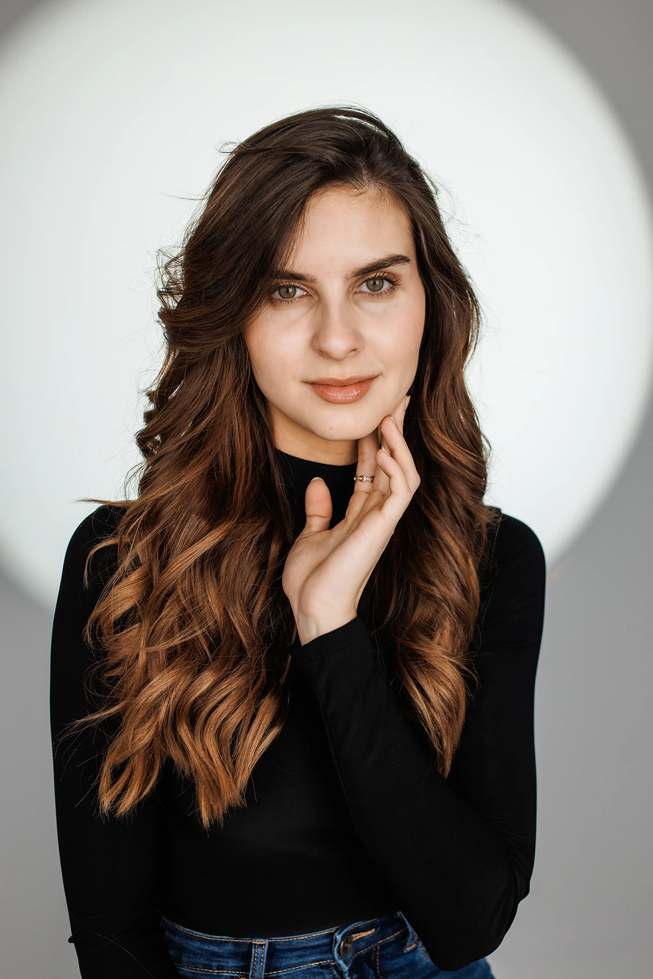 Dieses Portrait Shooting mit Celina entstand in einem Mietstudio in Villingen-Schwenningen und konzentriert sich auf eine reduzierte, grafische Bildsprache. Durch gezielte Lichtführung und die Verwendung von Farbe als gestalterisches Element entstehen Portraits, die zwischen klassischer Studiofotografie und moderner Editorial-Ästhetik stehen.