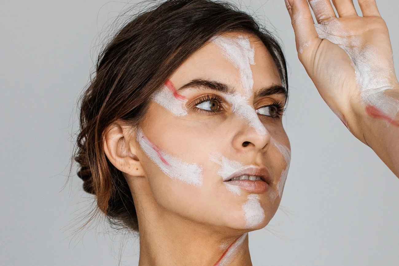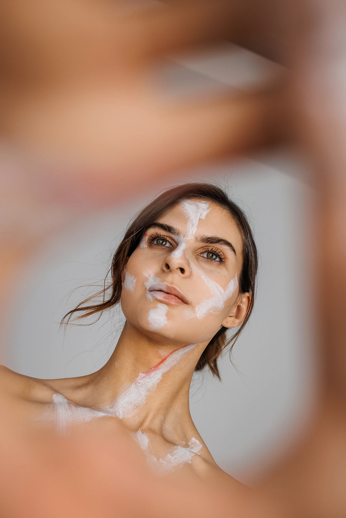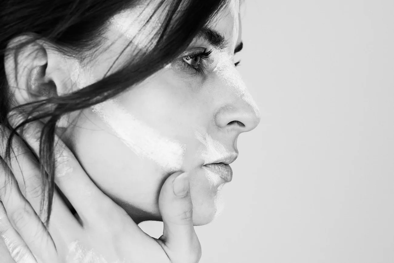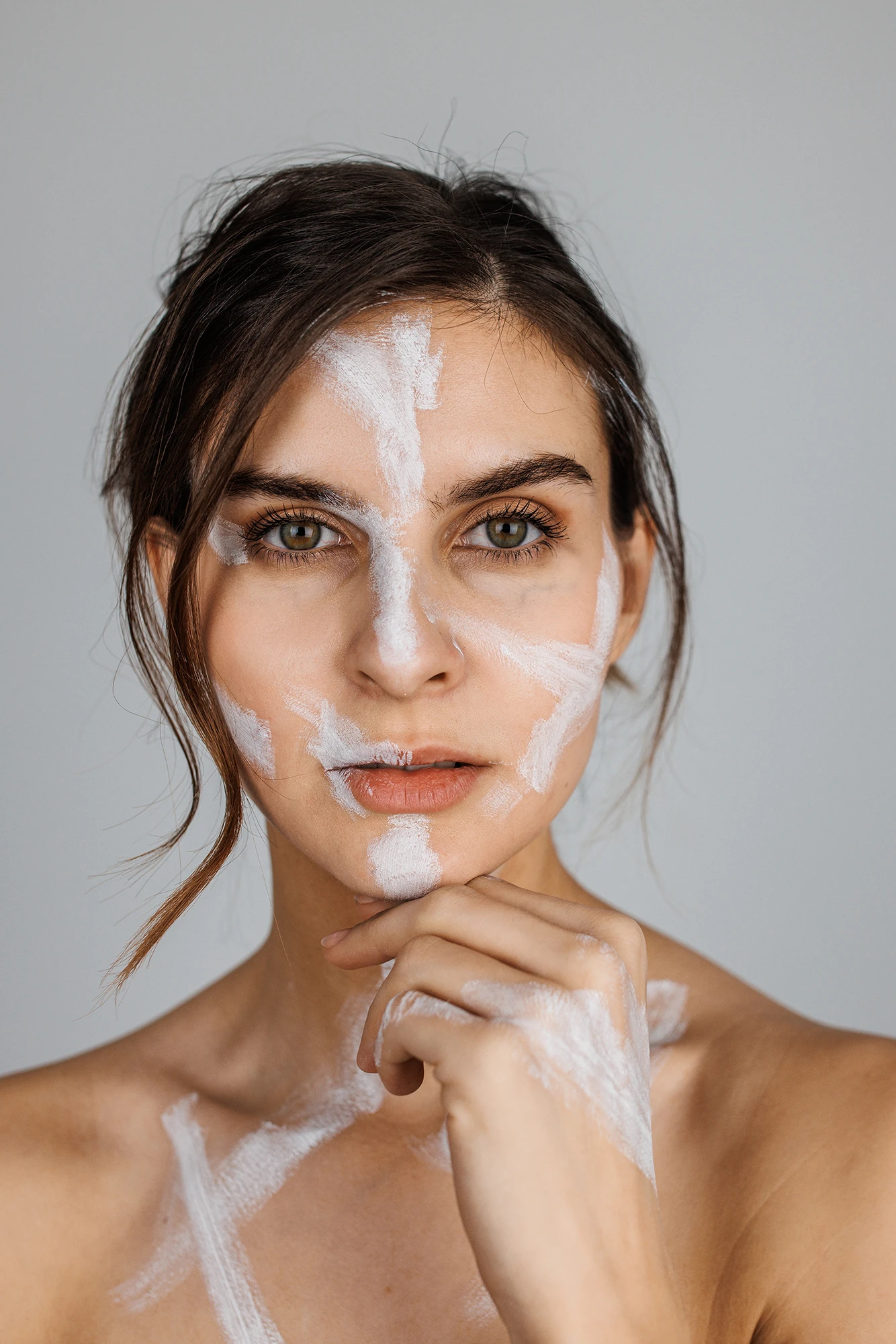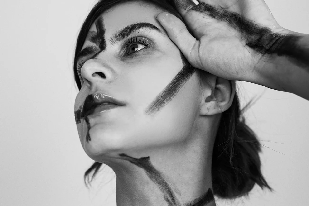 Die weiße, schwarze und farbige Bemalung auf Haut und Gesicht dient dabei als bewusst eingesetztes Gestaltungselement. Sie verstärkt Kontraste, lenkt den Blick auf bestimmte Bildbereiche und unterstützt die grafische Wirkung der Portraits. In Kombination mit ruhigem Hintergrund und klarer Lichtführung entstehen Aufnahmen, die sich an der Ästhetik moderner Editorial- und Studiofotografie orientieren.