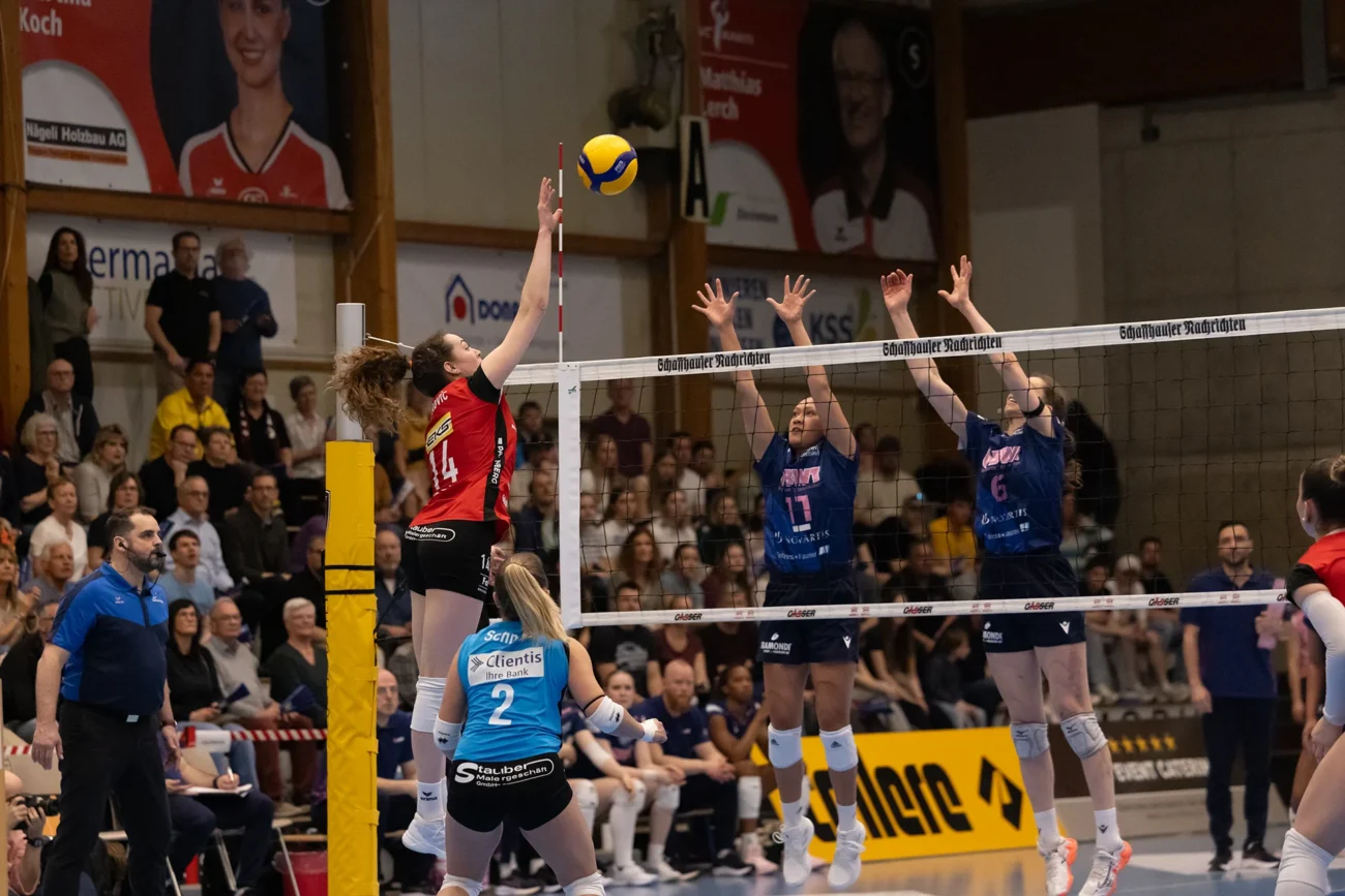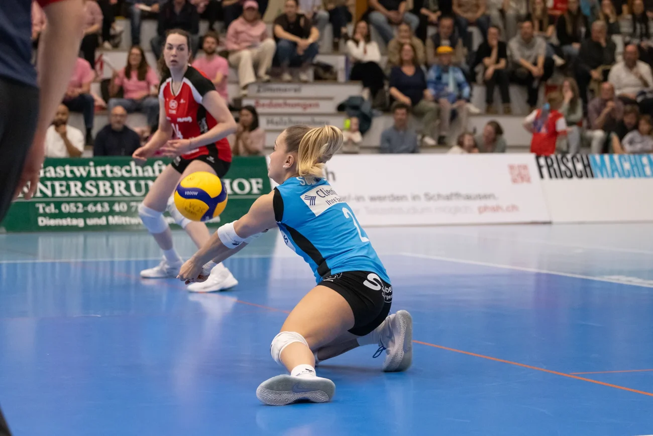 Der VC Kanti Schaffhausen startet konzentriert in das entscheidende Spiel und setzt früh ein klares Zeichen. Mit konsequentem Angriffsspiel und stabilem Sideout gelingt es dem Heimteam, Sm’Aesch Pfeffingen direkt unter Druck zu setzen. Kanti nutzt die eigenen Chancen effizient und sichert sich den ersten Satz deutlich mit 25:11. Auch im zweiten Durchgang bleibt das Bild zunächst ähnlich. Die Schaffhauserinnen agieren weiterhin strukturiert, halten den Druck hoch und kontrollieren das Spielgeschehen. Sm’Aesch findet nur phasenweise Lösungen, während Kanti konstant punktet und sich mit 25:18 eine komfortable 2:0-Führung erspielt.