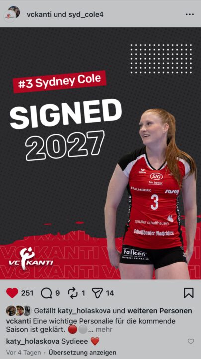 Instagram-Beitrag von VC Kanti Schaffhausen zur Vertragsverlängerung.